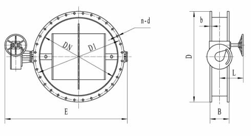 The valve is equipped with worm wheel transmission device. Rotate the hand wheel to drive the worm wheel and transmission shaft and the disc rotate at the same time, so the valve can be opened or closed fully or be adjusted freely. The open angle of the worm wheel device and the disc feed back the indicating switch position. The user can control the open angle of the disc according to the indicating position to realize adjusting. The worm wheel pairs have machine limiting device, which can control the full open or close of the valve to avoid damaging.